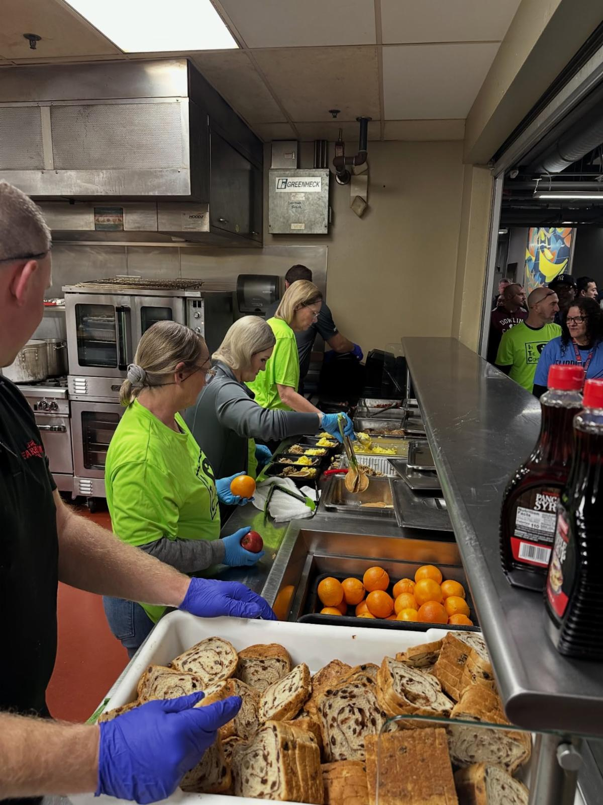Fareway contributed a full breakfast spread, including 1,200 slices of bacon, 50 pounds of sausage patties, 132 pounds of eggs, 1,050 pancakes, fresh fruit, milk, juice, coffee, and more. Fareway CEO Reynolds Cramer said Giving Tuesday highlights the need for charitable donations, but that attitude of giving back needs to persist year-round.